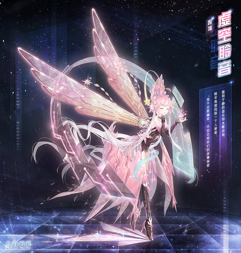 【虚空聆音】含正常姿势与特殊姿势,及全新妆容“悠然吟唱”,全新翅膀“未来邀约”,精美可移动摆件“虚假光明”,“湮没之渊”,“破碎界面”。