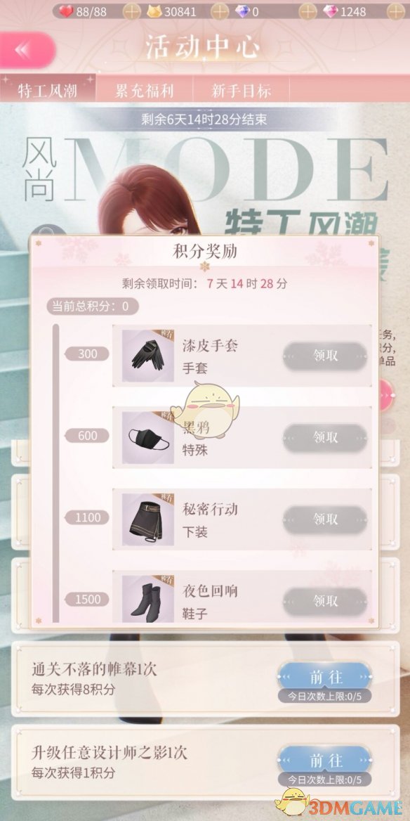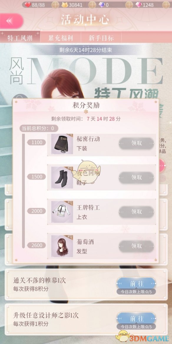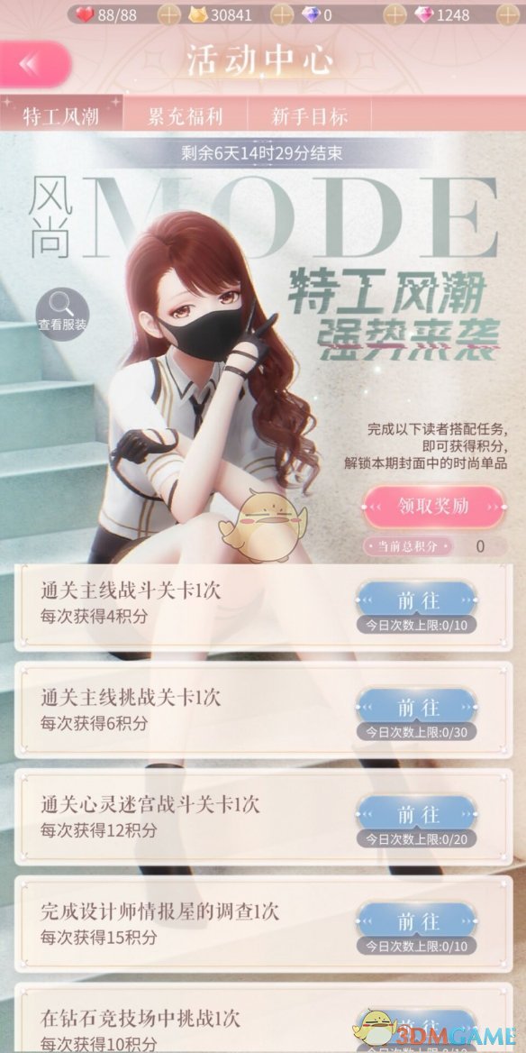 以上就是小编整理的闪耀暖暖特工活动任务奖励介绍,想知道更多相关资讯攻略的请关注3DM手游网。