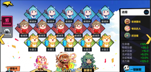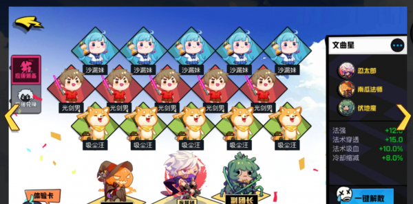 团长:忍太郎,技能命中加伤害,爆发首选。副团长:南瓜法师,升级加法强,中规中矩。伏地魔:减少冷却蓝耗,作用很强,适应文曲星频繁释放技能
