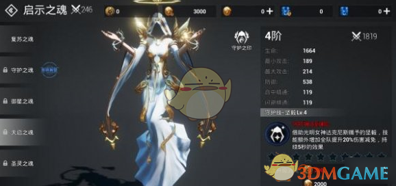 而启示之魂的技能方面,冰霜女神的技能借助的是其睿智;火焰女神则借助的是其狂怒;光明女神是坚毅,虽然调动的女神不同,但技能的效果却是一致的,1阶的攻击提升、2阶防御力提升。
